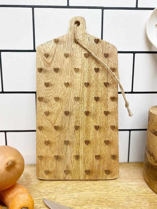 Hearts Design Engraved Wooden Cheese Board