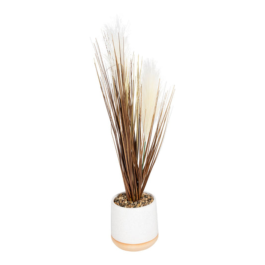 Artificial Grasses In A White Pot With White Feathers - 50cm