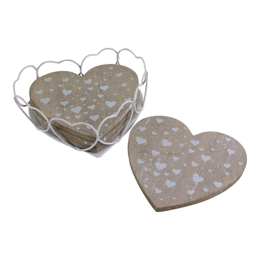 Set Of 4 Heart Shaped Coasters In Wire Holder