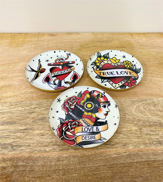 Set of Two Metal Palm and Phrenology Head Round Coasters