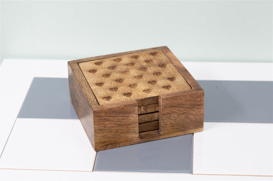 Set Of 6 Mango Wood Coasters On Metal Stand