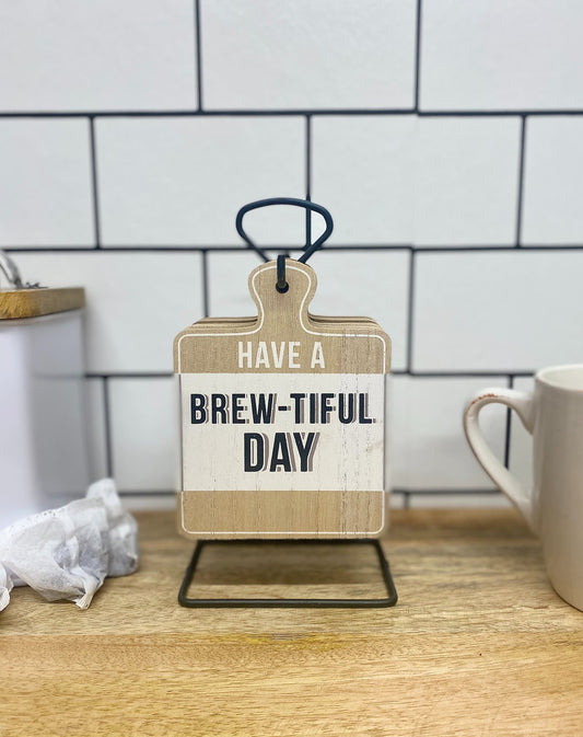 Acacia Coasters With a Black Metal Stand, Set Of 6