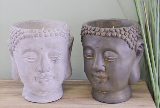 Set of 2 Large Cement Buddha Design Candles