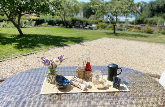 Set Of 6 Round Bamboo Coasters With Holder 12cm