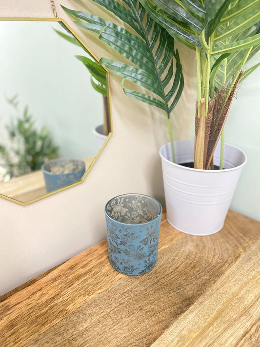 Sold outBlue Glass Face Design Candle Holder