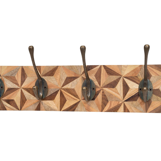 Aztec Design Wooden Plinth, 4 Double Coat Hooks