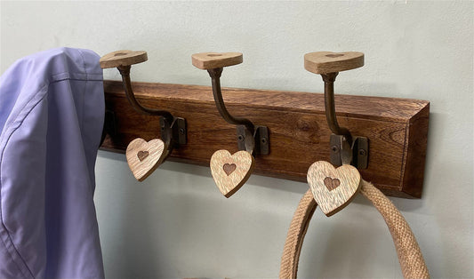 Sold outMango Wood Heart 4 Double Coat Hooks