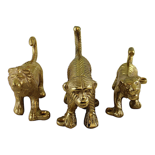 Set of 3 Gold Metal Safari Animal Coat Hooks