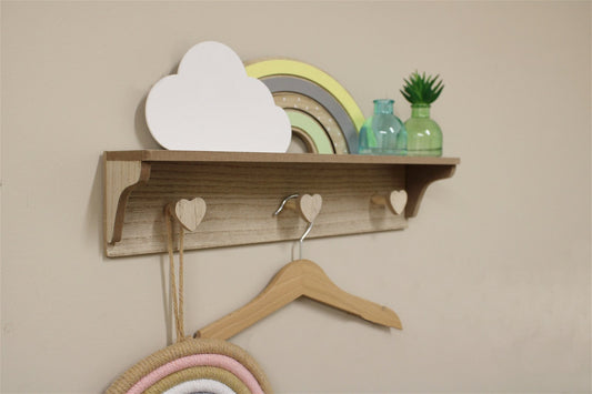 Sold outRainbow and Cloud Shelf with Hooks