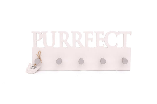 Wooden Wall Cat Purrfect 5 Hooks Holder
