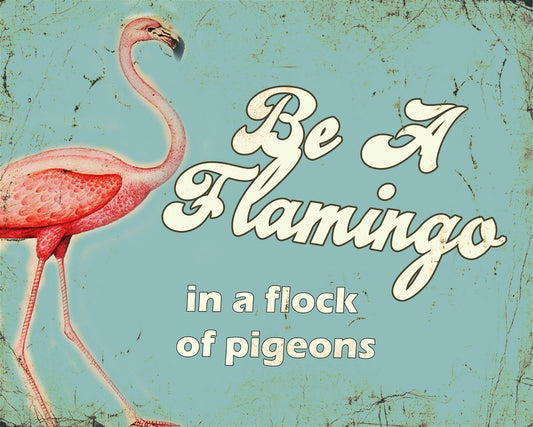 Vintage Metal Sign - Retro Art - Be A Flamingo