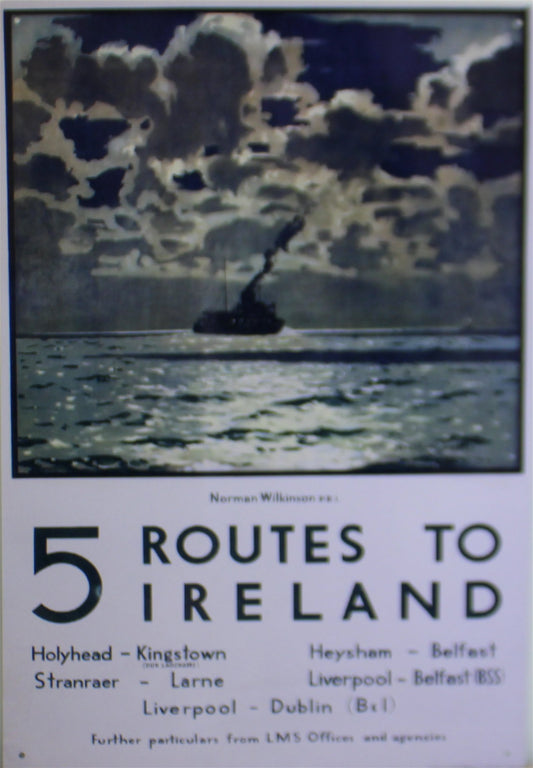 Vintage Metal Sign - Retro Art - 5 Routes To Ireland Ferry Poster