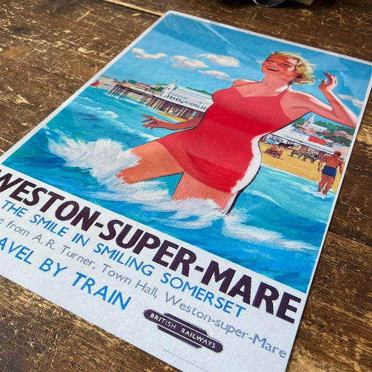 Vintage Metal Sign - British Railways Retro Advertising, Weston-Super-Mare, Somerset