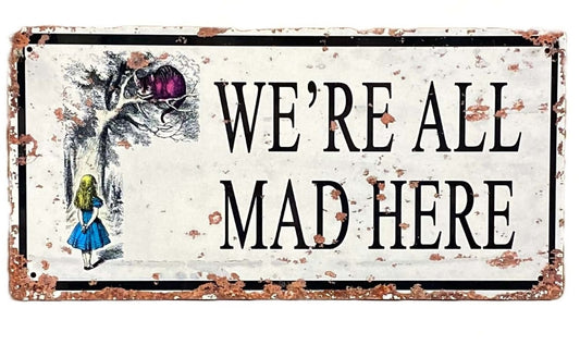 Vintage Metal Sign - Alice In Wonderland - We're All Mad Here