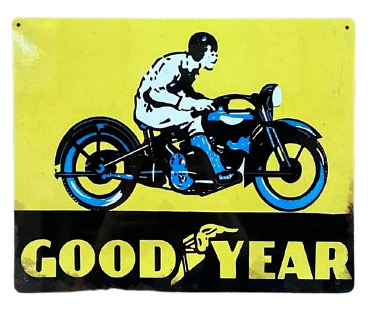 Metal Advertising Wall Sign - Good Year Tyre Motorbike