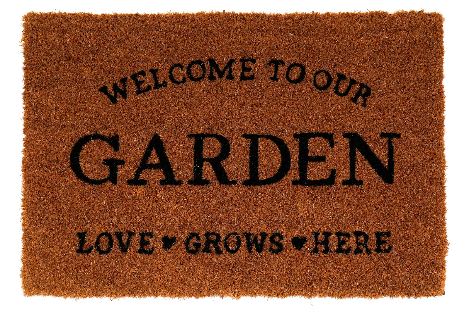 Add character to the entrance to your garden with the garden themed door mats. The door mat reads 'Welcome to our garden' 'Love grows here'. Made from coir which is a strong, hard-wearing fibre which is ideal for doormats. The bottom of the mat is made from PVC which is flexible but tough and ensures that dirt is trapped in the mat itself. Measurements: D1.5 x H40 x W60cm